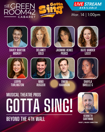 I produce a monthly cabaret show - Gotta Sing with Kenneth Gartman. After 25 years of working in NYC as a music director, vocal coach, audition accompanist, and entertainer, I've become friends with so many talented people who always seem to be chasing the work, but they don't often get to do a lot of solo performing...at least not here in NYC. I figured I'd create something to remedy that! These performers are Musical Theatre pros who regularly book regional theatre, Broadway & Off Broadway work.